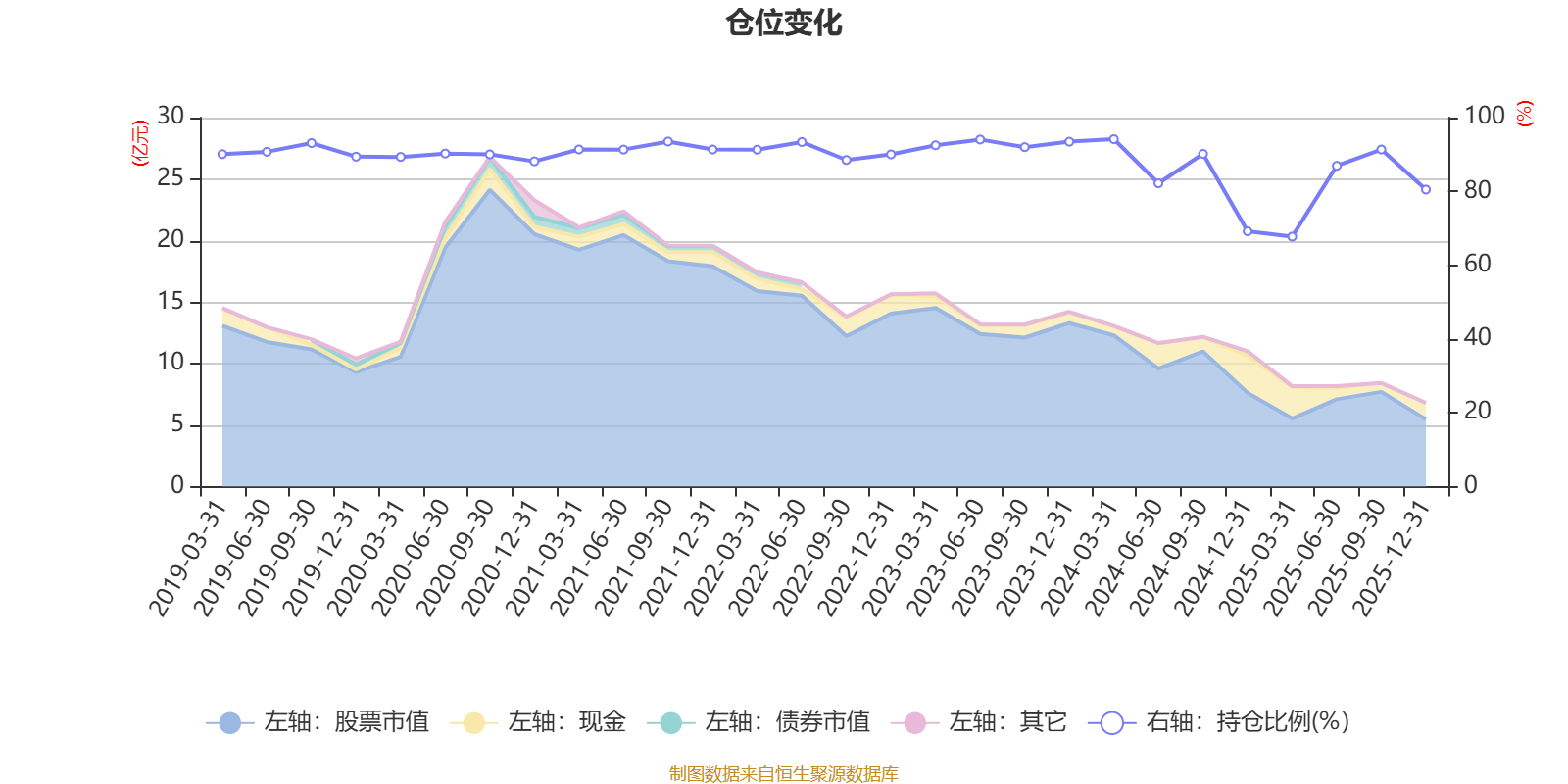 据定期报告数据统计,近三年平均股票仓位为86.19%,同类平均为86.7%。2024年一季度末基金达到94.16%的最高仓位,2025年一季度末最低,为67.75%。