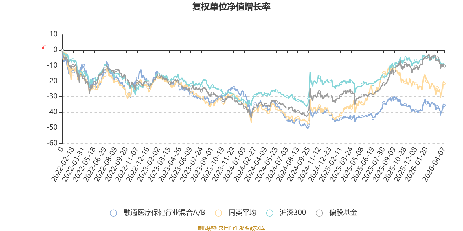 截至4月7日,融通医疗保健行业混合A/B近三个月复权单位净值增长率为-1.21%,位于同类可比基金27/106;近半年复权单位净值增长率为-5.56%,位于同类可比基金17/106;近一年复权单位净值增长率为20.10%,位于同类可比基金80/104;近三年复权单位净值增长率为-18.56%,位于同类可比基金65/78。