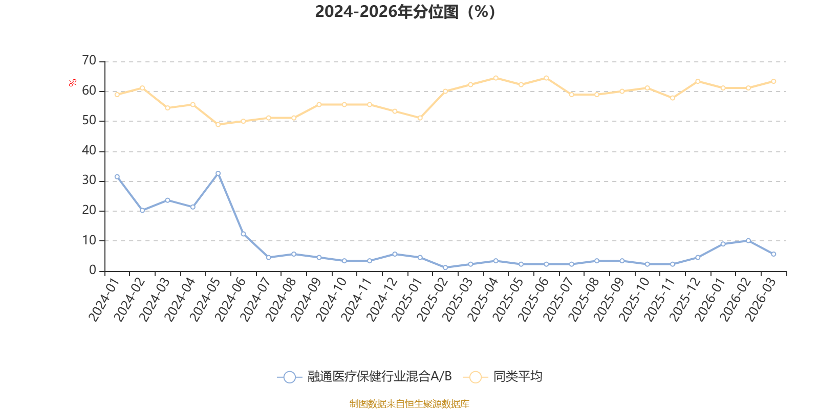 通过所选区间该基金净值增长率分位图,可以观察该基金与同类基金业绩比较情况。图为坐标原点到区间内某时点的净值增长率在同类基金中的分位数。
