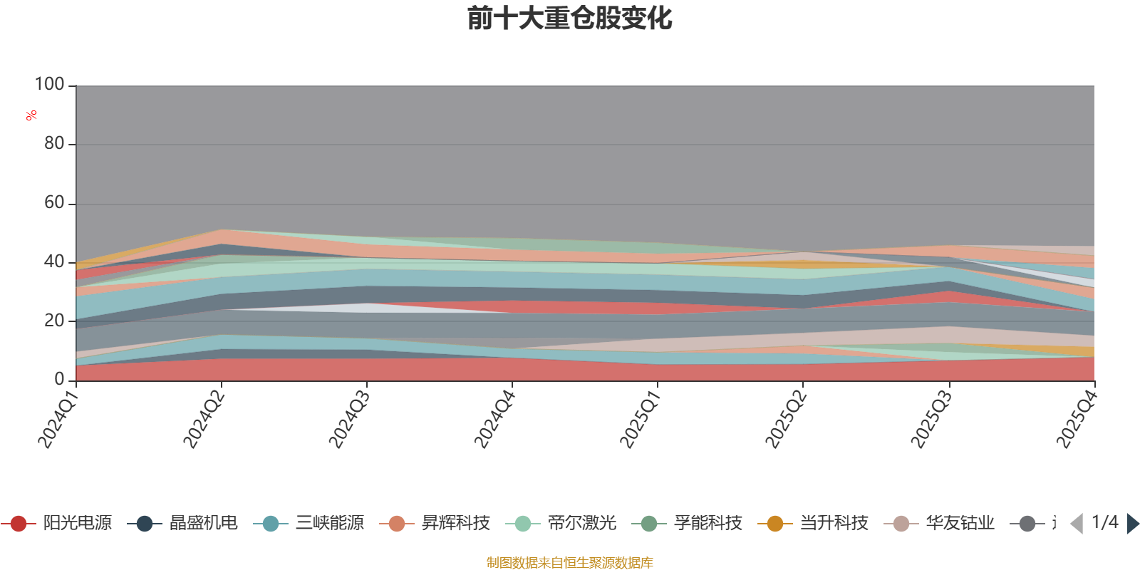 截至2025年末,基金十大重仓股分别是宁德时代、阳光电源、隆基绿能、特变电工、亿纬锂能、华友钴业、科达利、当升科技、厦钨新能、震裕科技。