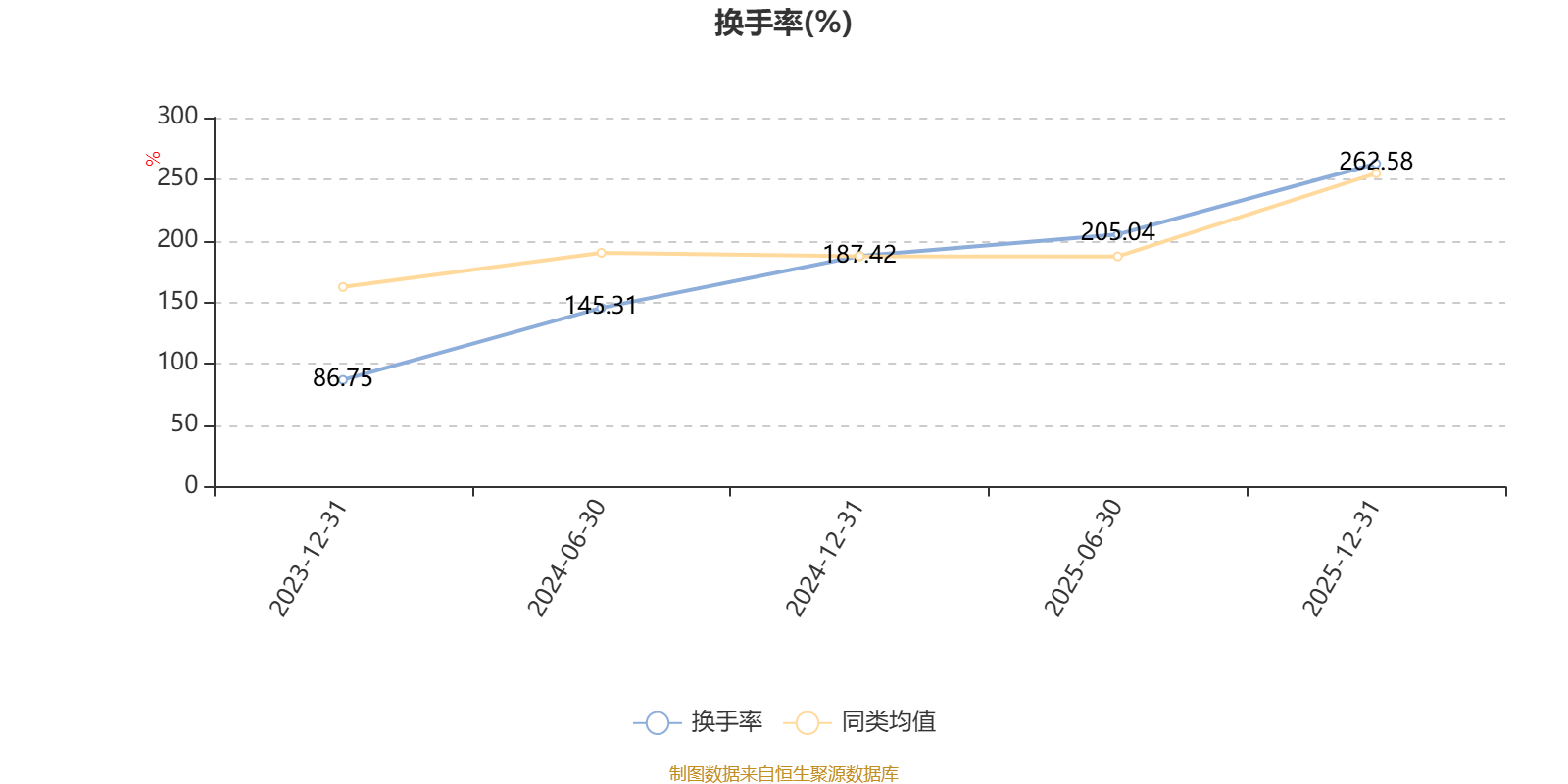 截至2025年12月31日,基金最近一年换手率约459.91%,持续1年高于同类均值。