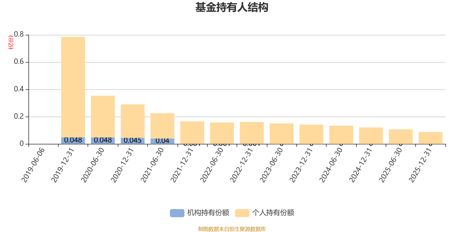 截至2025年12月31日,基金持有人共计1464户,合计持有882.8万份。其中管理人员工持有9.44万份,占比1.07%,机构持有份额占比0.00%,个人投资者占比100.00%。