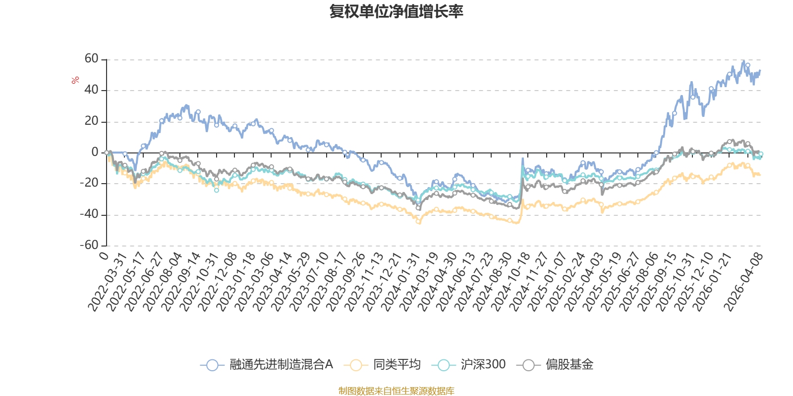截至4月7日,融通先进制造混合A近三个月复权单位净值增长率为4.30%,位于同类可比基金47/621;近半年复权单位净值增长率为12.04%,位于同类可比基金45/621;近一年复权单位净值增长率为101.37%,位于同类可比基金21/617;近三年复权单位净值增长率为39.45%,位于同类可比基金82/559。