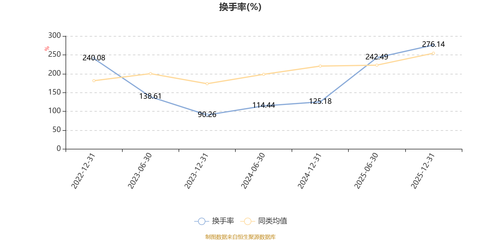 截至2025年12月31日,基金最近一年换手率约525.29%,持续1年高于同类均值。