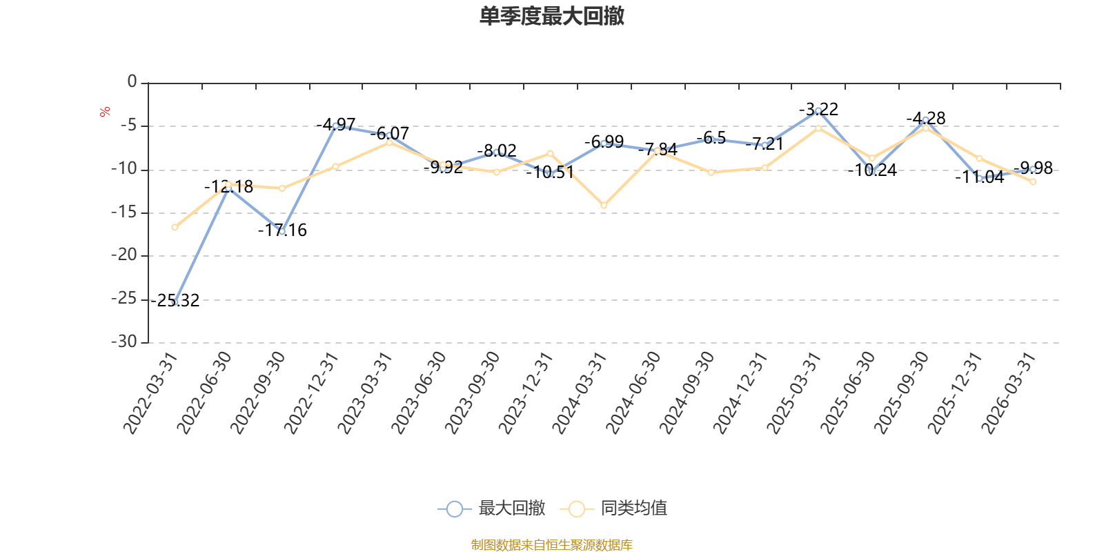 截至4月7日,基金近三年最大回撤为26.82%,同类可比基金排名488/1264。单季度最大回撤出现在2022年一季度,为25.32%。