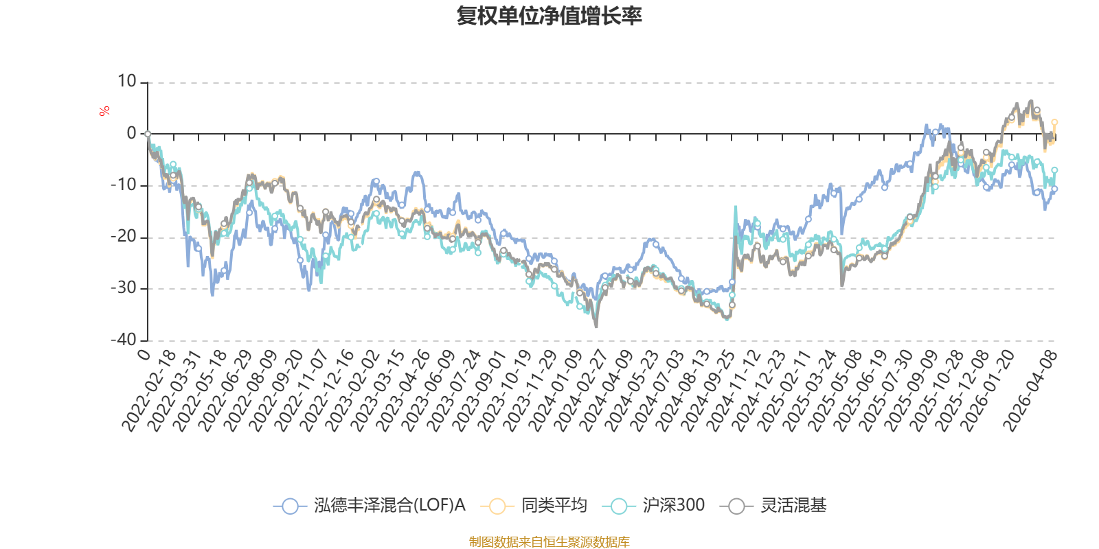 截至4月8日,泓德丰泽混合(LOF)A近三个月复权单位净值增长率为-2.74%,位于同类可比基金934/1287;近半年复权单位净值增长率为-11.72%,位于同类可比基金1210/1286;近一年复权单位净值增长率为9.18%,位于同类可比基金1078/1286;近三年复权单位净值增长率为-3.60%,位于同类可比基金1027/1286。