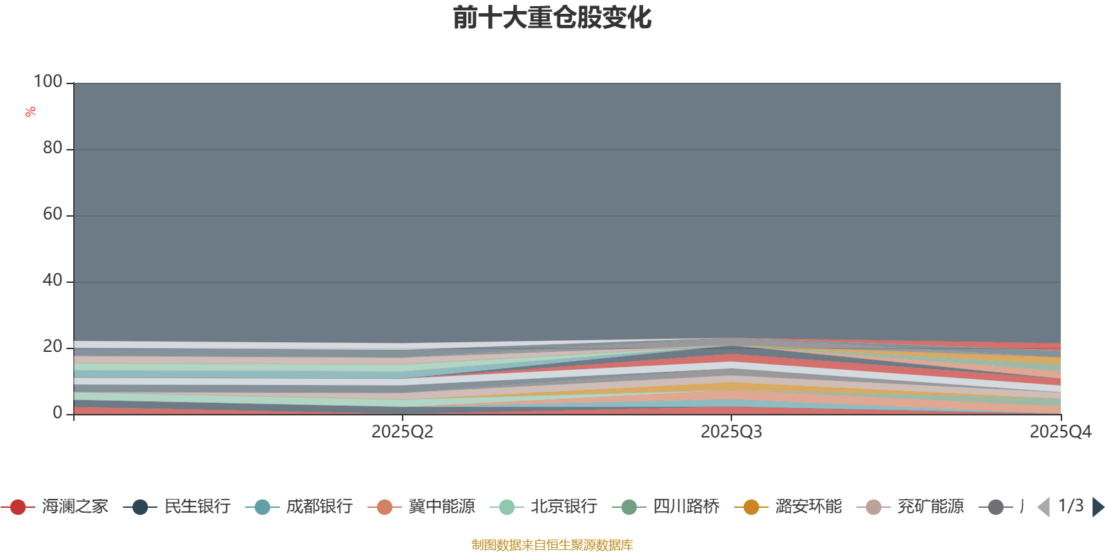 截至2025年末,基金十大重仓股分别是冀中能源、四川路桥、沪农商行、上峰水泥、云天化、上海银行、渝农商行、陕西煤业、中远海控、兖矿能源。