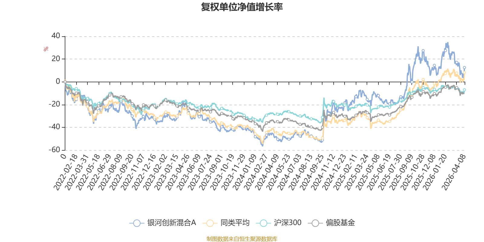截至4月8日,银河创新混合A近三个月复权单位净值增长率为-9.11%,位于同类可比基金213/229;近半年复权单位净值增长率为-11.80%,位于同类可比基金215/229;近一年复权单位净值增长率为42.53%,位于同类可比基金177/229;近三年复权单位净值增长率为35.67%,位于同类可比基金98/171。