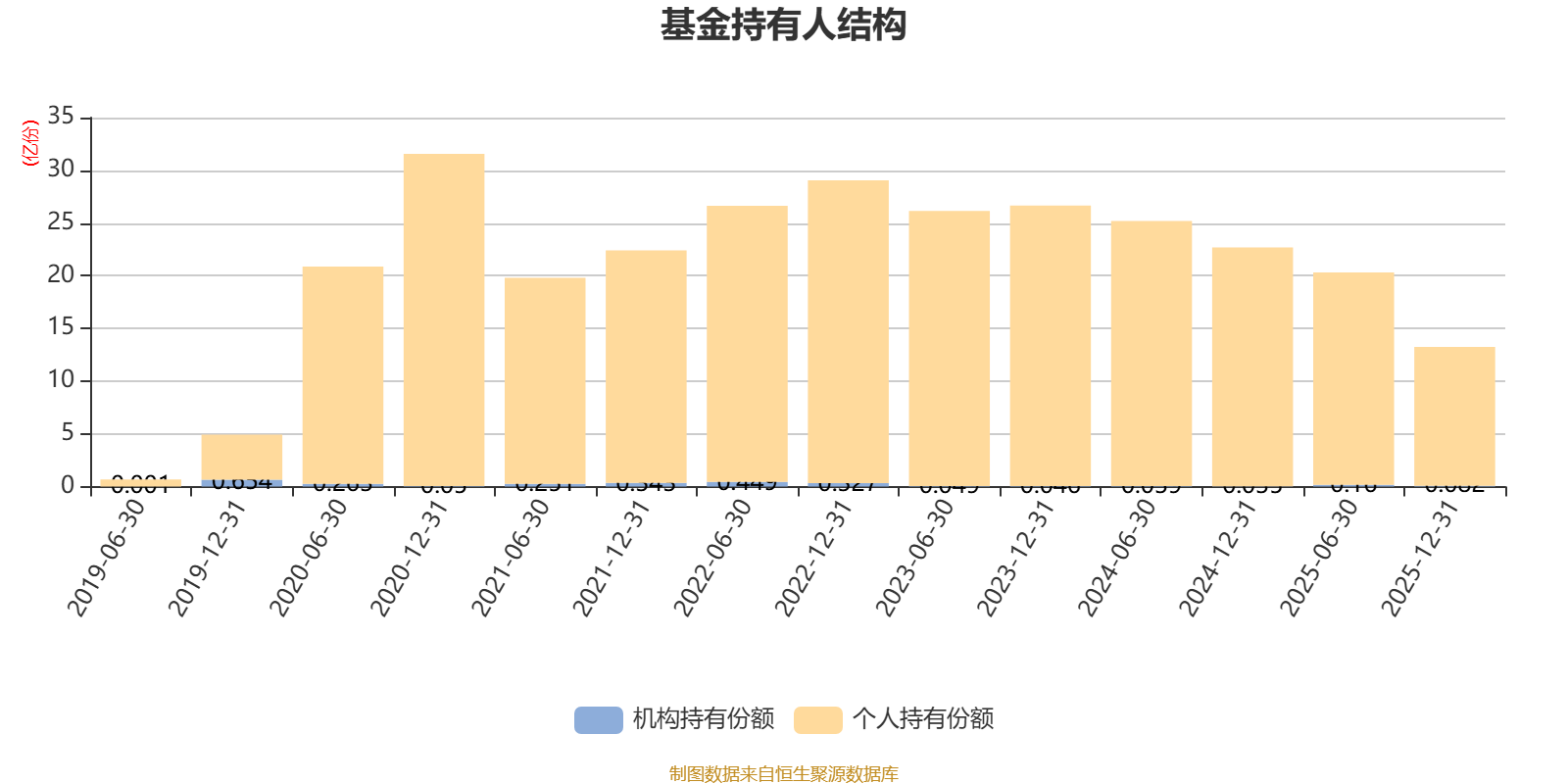截至2025年12月31日,基金持有人共计59.28万户,合计持有13.25亿份。其中管理人员工持有70.66万份,占比0.05%,机构持有份额占比0.62%,个人投资者占比99.38%。