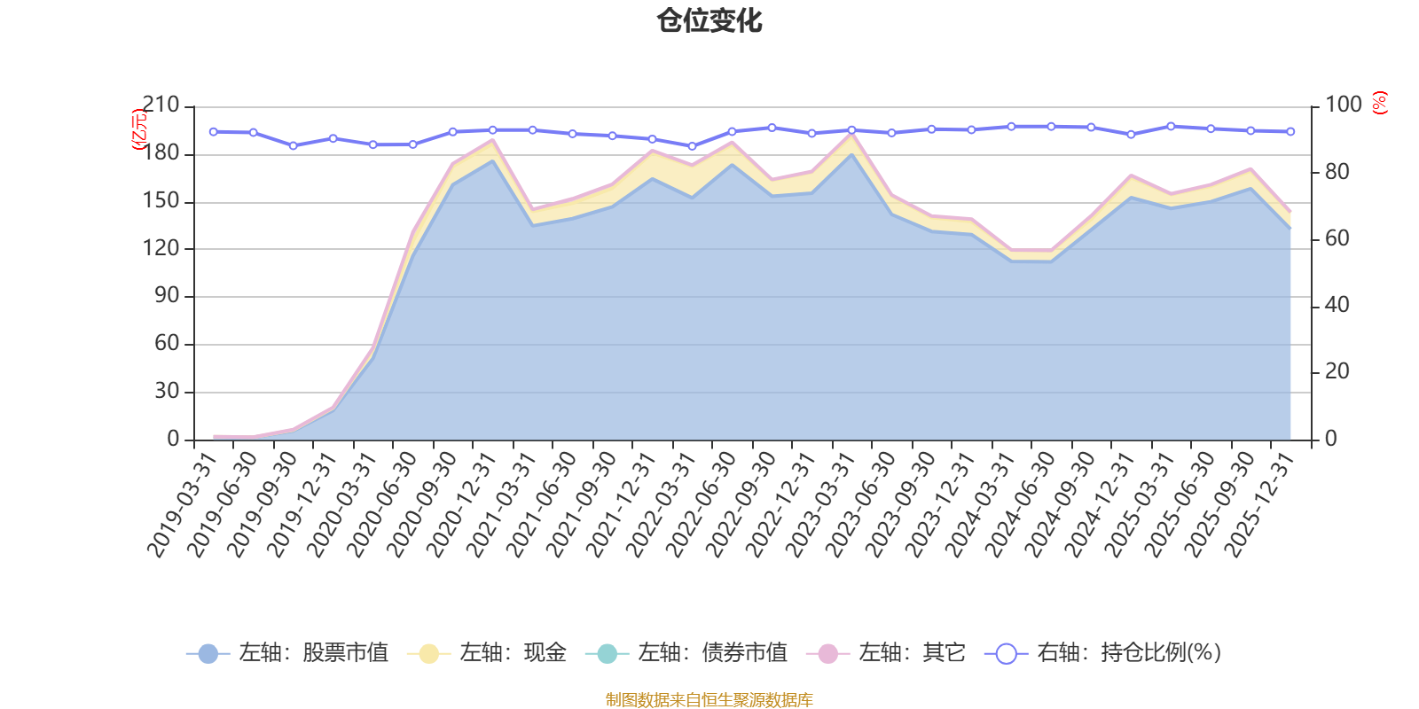据定期报告数据统计,近三年平均股票仓位为93.07%,同类平均为86.9%。2025年一季度末基金达到94.05%的最高仓位,2022年一季度末最低,为88.04%。