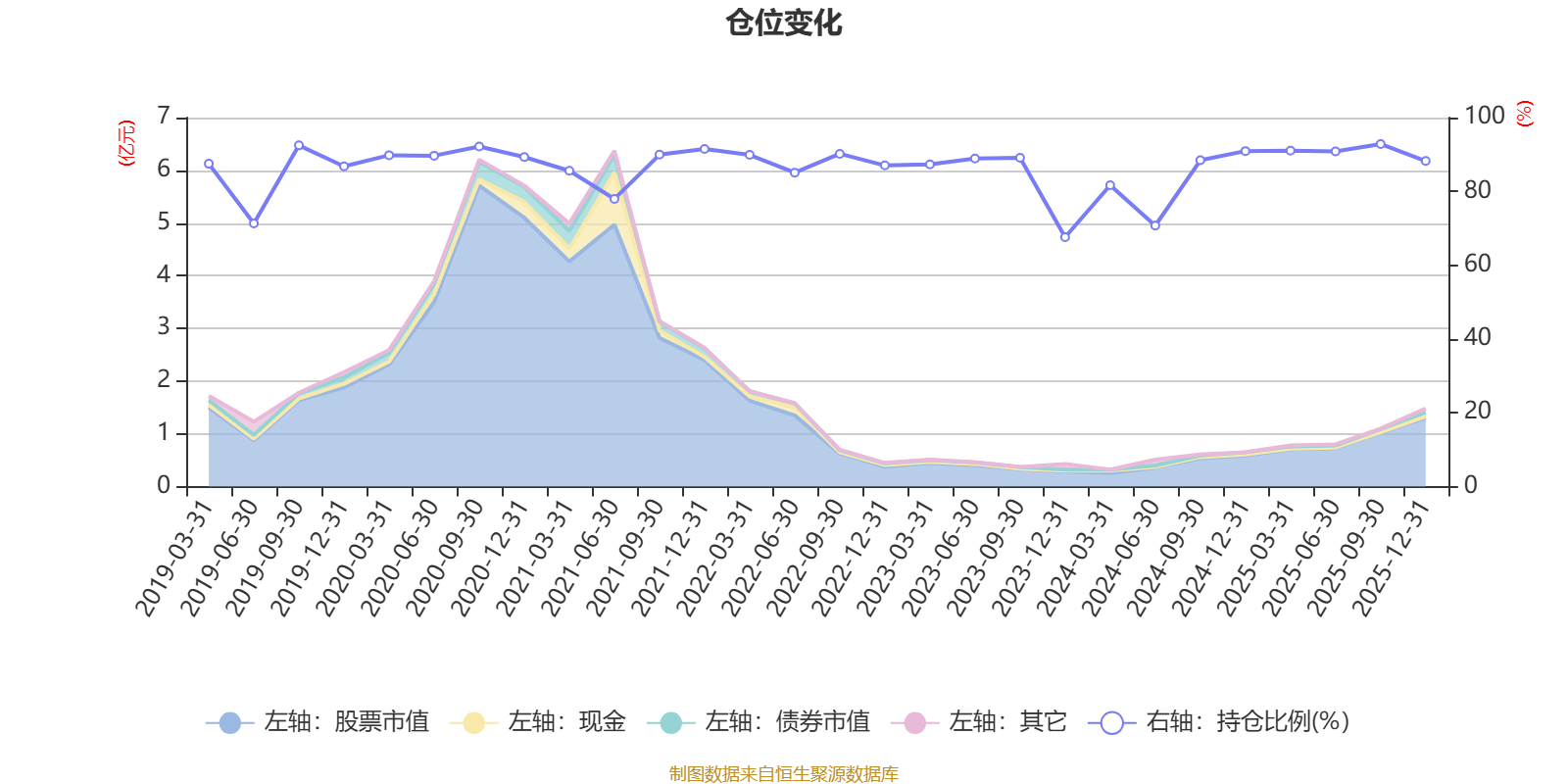据定期报告数据统计,近三年平均股票仓位为85.64%,同类平均为72.57%。2025年三季度末基金达到92.85%的最高仓位,2023年末最低,为67.6%。