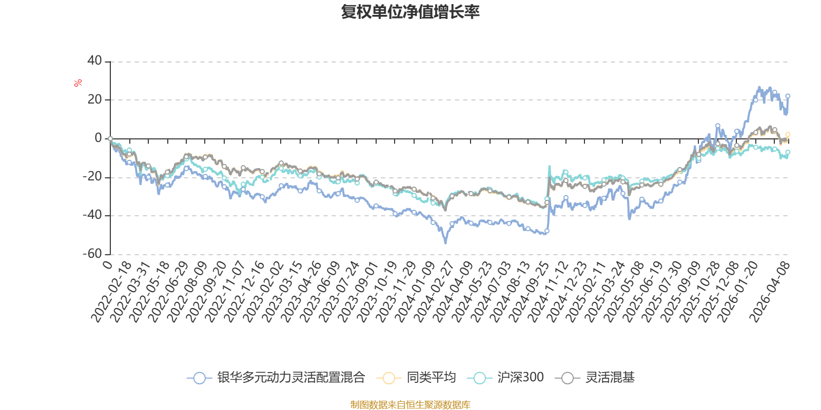 截至4月8日,银华多元动力灵活配置混合近三个月复权单位净值增长率为6.32%,位于同类可比基金181/1287;近半年复权单位净值增长率为19.86%,位于同类可比基金84/1286;近一年复权单位净值增长率为110.82%,位于同类可比基金53/1286;近三年复权单位净值增长率为55.42%,位于同类可比基金116/1286。