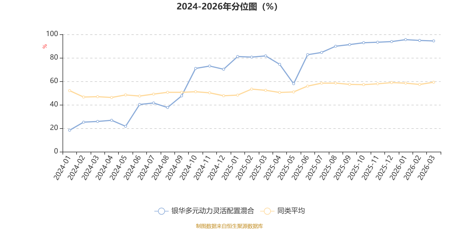 通过所选区间该基金净值增长率分位图,可以观察该基金与同类基金业绩比较情况。图为坐标原点到区间内某时点的净值增长率在同类基金中的分位数。