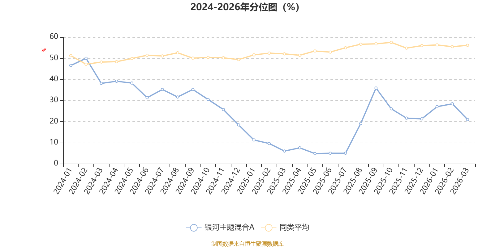 通过所选区间该基金净值增长率分位图,可以观察该基金与同类基金业绩比较情况。图为坐标原点到区间内某时点的净值增长率在同类基金中的分位数。