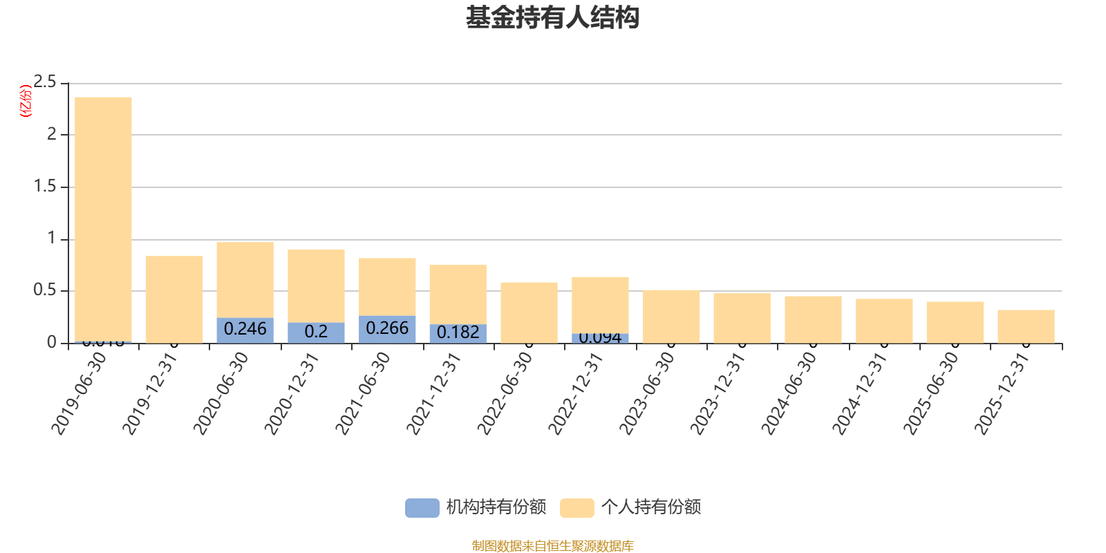 截至2025年12月31日,基金持有人共计3153户,合计持有3187.4万份。其中管理人员工持有2.62万份,占比0.08%,机构持有份额占比0.00%,个人投资者占比100.00%。