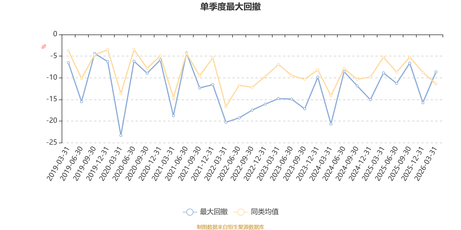 截至4月7日,基金近三年最大回撤为40.5%,同类可比基金排名1022/1264。单季度最大回撤出现在2020年一季度,为23.32%。