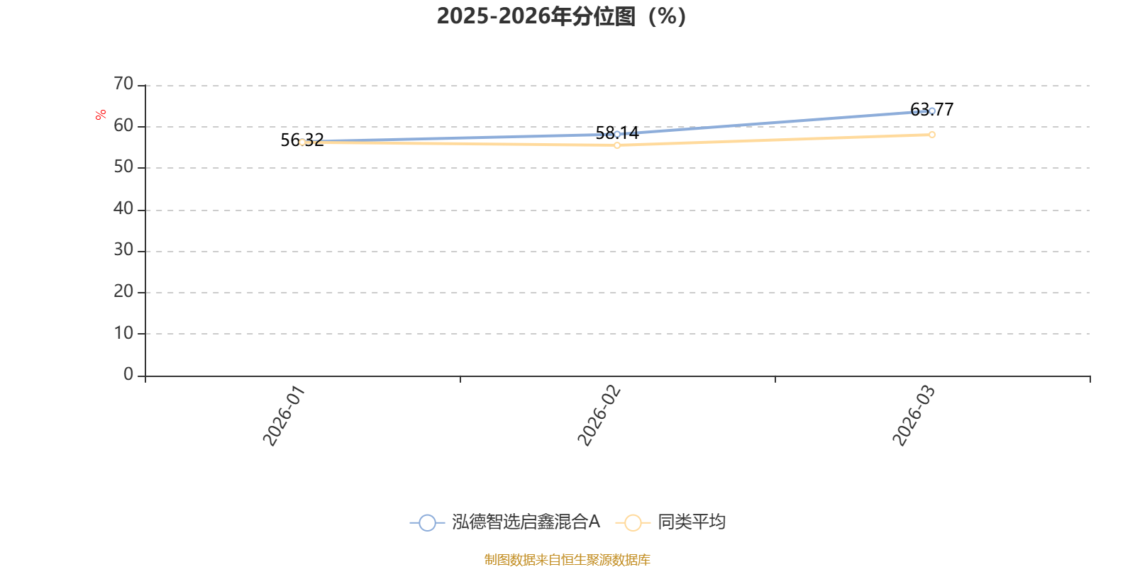 通过所选区间该基金净值增长率分位图,可以观察该基金与同类基金业绩比较情况。图为坐标原点到区间内某时点的净值增长率在同类基金中的分位数。
