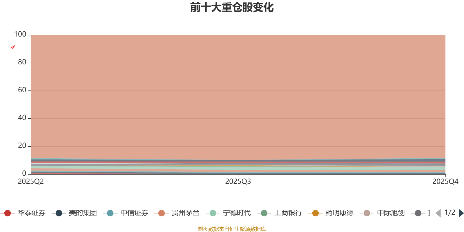 截至2025年末,基金十大重仓股分别是中国平安、宁德时代、贵州茅台、紫金矿业、中际旭创、兴业银行、新易盛、招商银行、美的集团、中信证券。