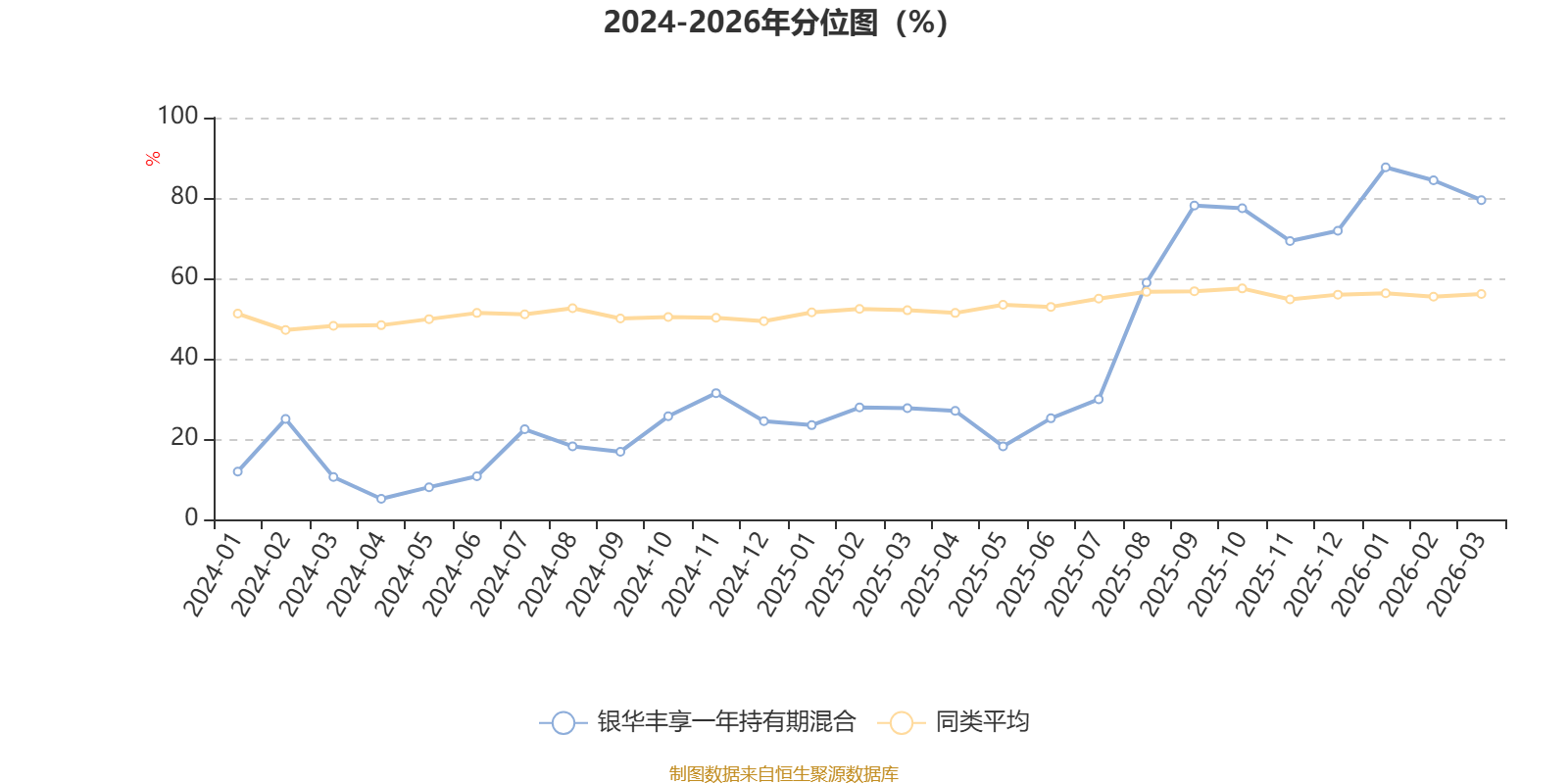 通过所选区间该基金净值增长率分位图,可以观察该基金与同类基金业绩比较情况。图为坐标原点到区间内某时点的净值增长率在同类基金中的分位数。