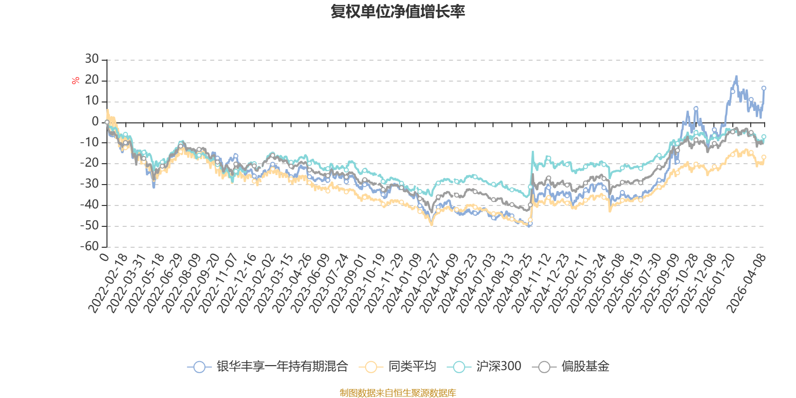 截至4月8日,银华丰享一年持有期混合近三个月复权单位净值增长率为6.46%,位于同类可比基金78/621;近半年复权单位净值增长率为12.94%,位于同类可比基金80/621;近一年复权单位净值增长率为96.79%,位于同类可比基金38/618;近三年复权单位净值增长率为46.64%,位于同类可比基金76/559。