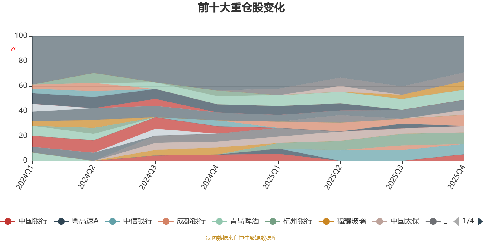 该基金持股集中度较高。截至2025年末,基金十大重仓股分别是杭州银行、中国平安、中信银行、美的集团、招商银行、江苏银行、紫金矿业、中国太保、中国银行、南京银行。