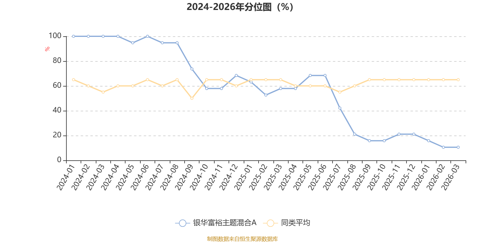 通过所选区间该基金净值增长率分位图,可以观察该基金与同类基金业绩比较情况。图为坐标原点到区间内某时点的净值增长率在同类基金中的分位数。
