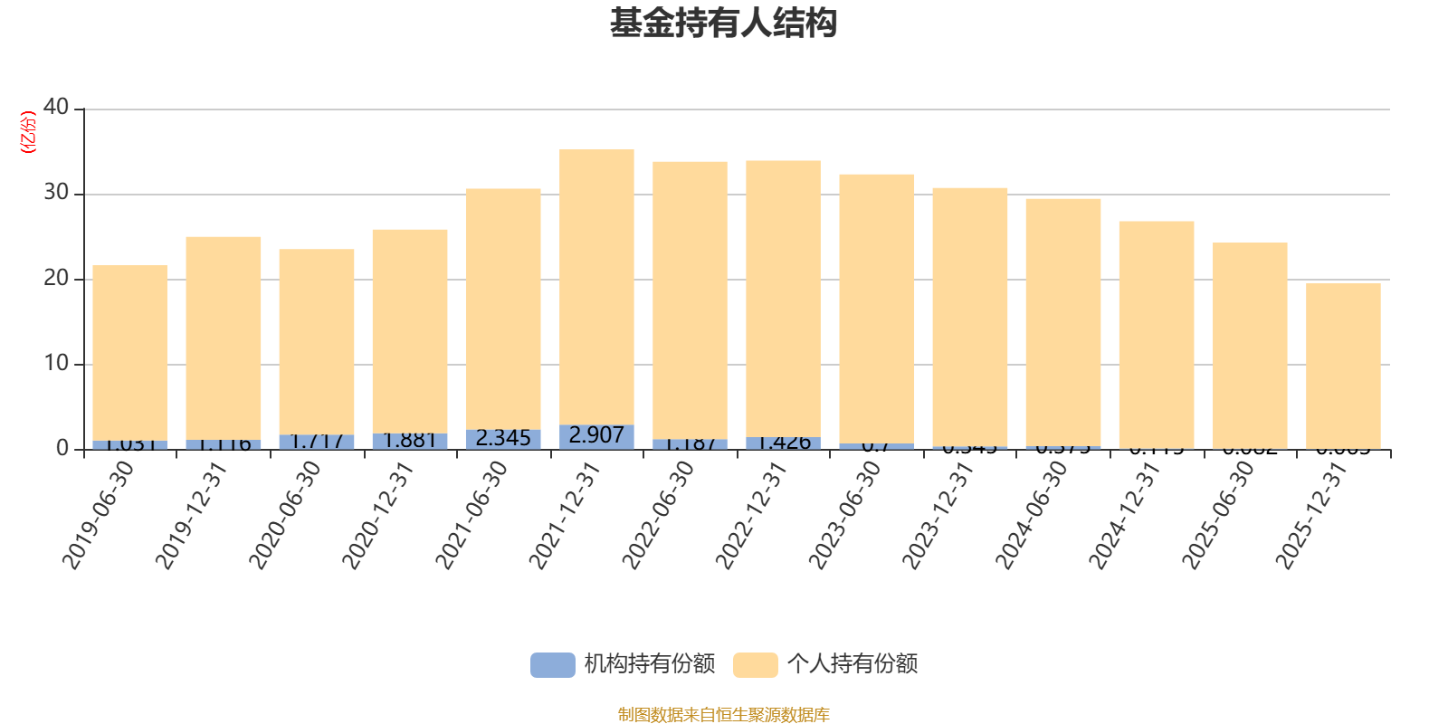 截至2025年12月31日,基金持有人共计67.17万户,合计持有19.48亿份。其中管理人员工持有185.31万份,占比0.10%,机构持有份额占比0.32%,个人投资者占比99.68%。