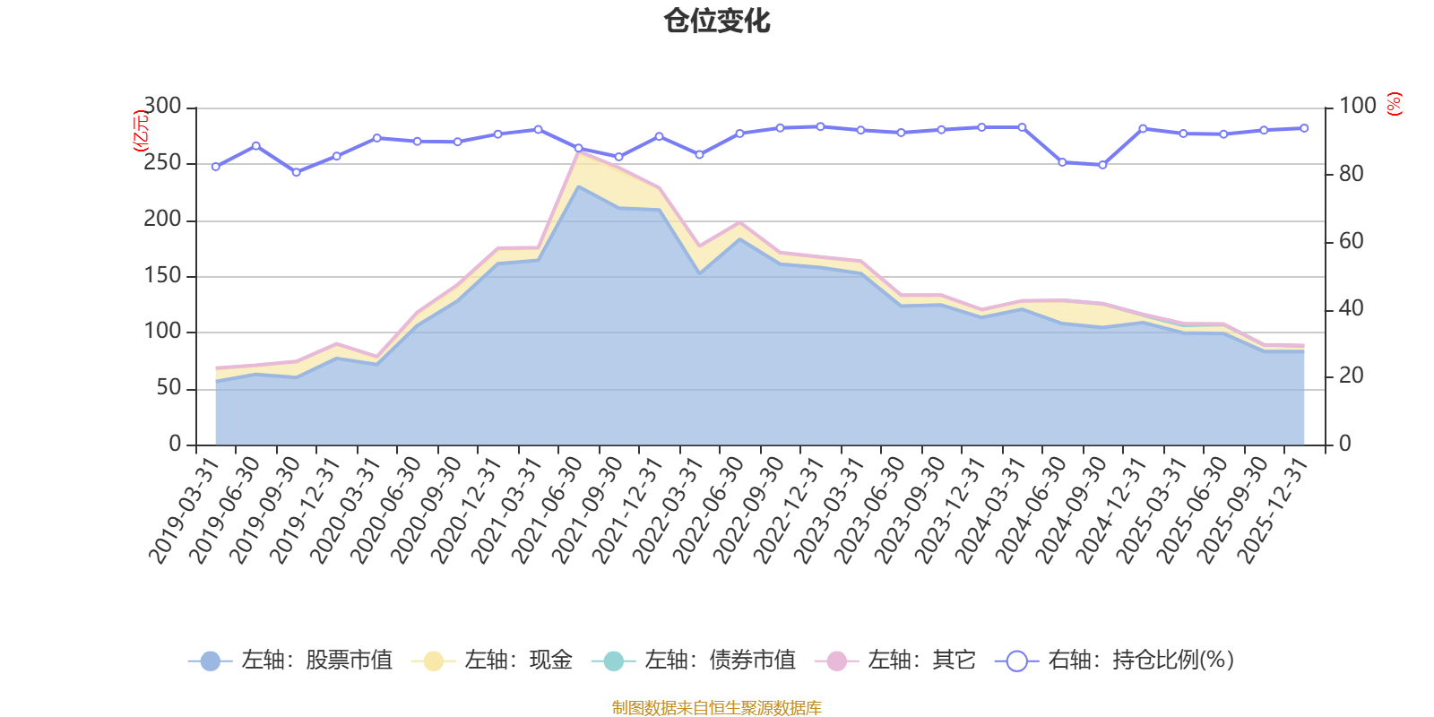 据定期报告数据统计,近三年平均股票仓位为91.65%,同类平均为86.82%。2022年末基金达到94.38%的最高仓位,2019年三季度末最低,为80.82%。