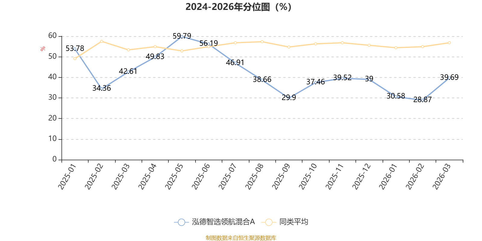 通过所选区间该基金净值增长率分位图,可以观察该基金与同类基金业绩比较情况。图为坐标原点到区间内某时点的净值增长率在同类基金中的分位数。