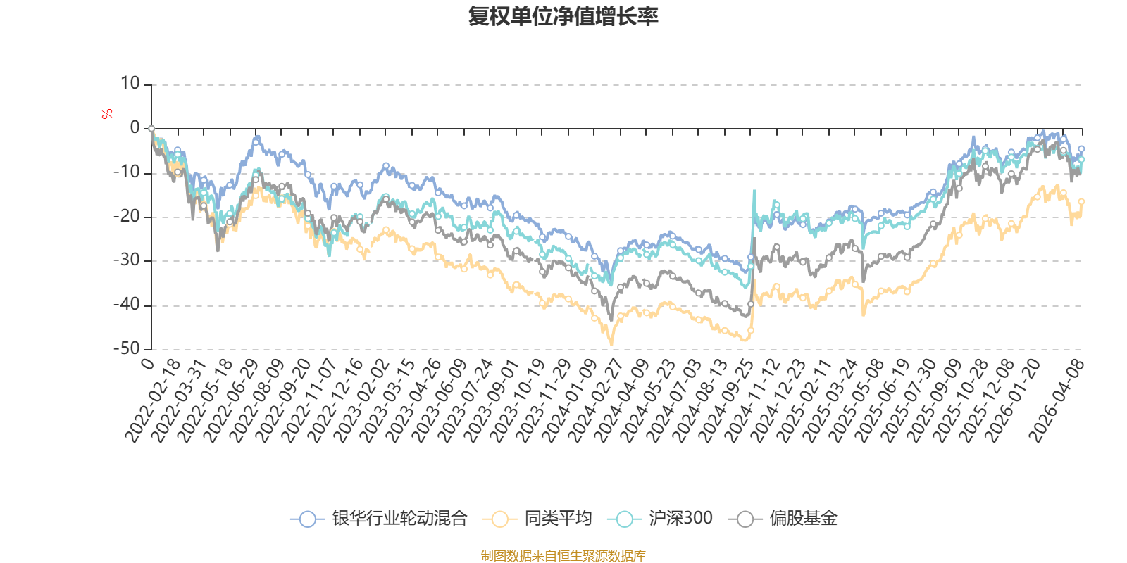 截至4月8日,银华行业轮动混合近三个月复权单位净值增长率为-1.75%,位于同类可比基金427/689;近半年复权单位净值增长率为-1.20%,位于同类可比基金470/689;近一年复权单位净值增长率为23.52%,位于同类可比基金515/685;近三年复权单位净值增长率为7.04%,位于同类可比基金242/417。