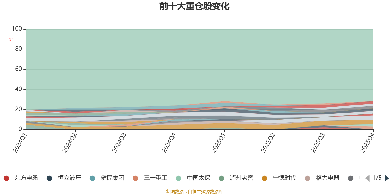 截至2025年末,基金十大重仓股分别是宁德时代、中国平安、三一重工、贵州茅台、紫金矿业、立讯精密、中国移动、中国太保、恒瑞医药、鹏鼎控股。