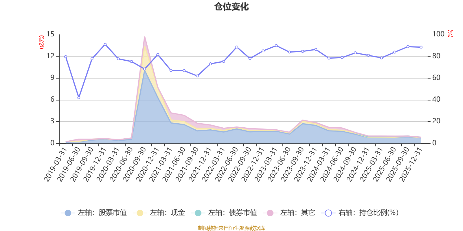 据定期报告数据统计,近三年平均股票仓位为83.86%,同类平均为84.04%。2019年末基金达到91.13%的最高仓位,2019年上半年末最低,为41.99%。