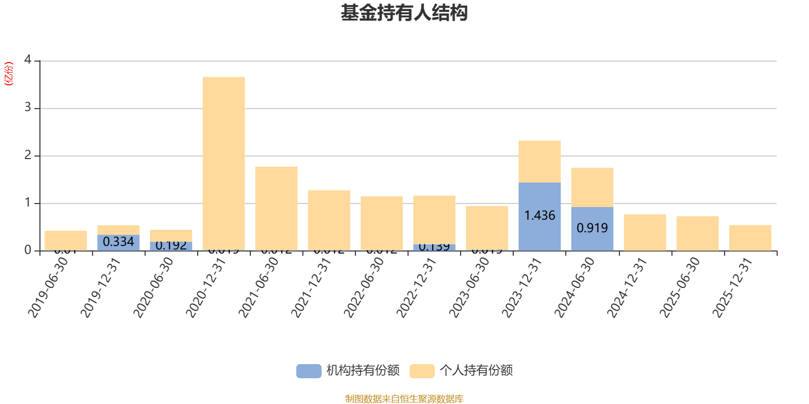 截至2025年12月31日,基金持有人共计2077户,合计持有5385.86万份。其中管理人员工持有117.61万份,占比2.18%,个人投资者占比100.00%。