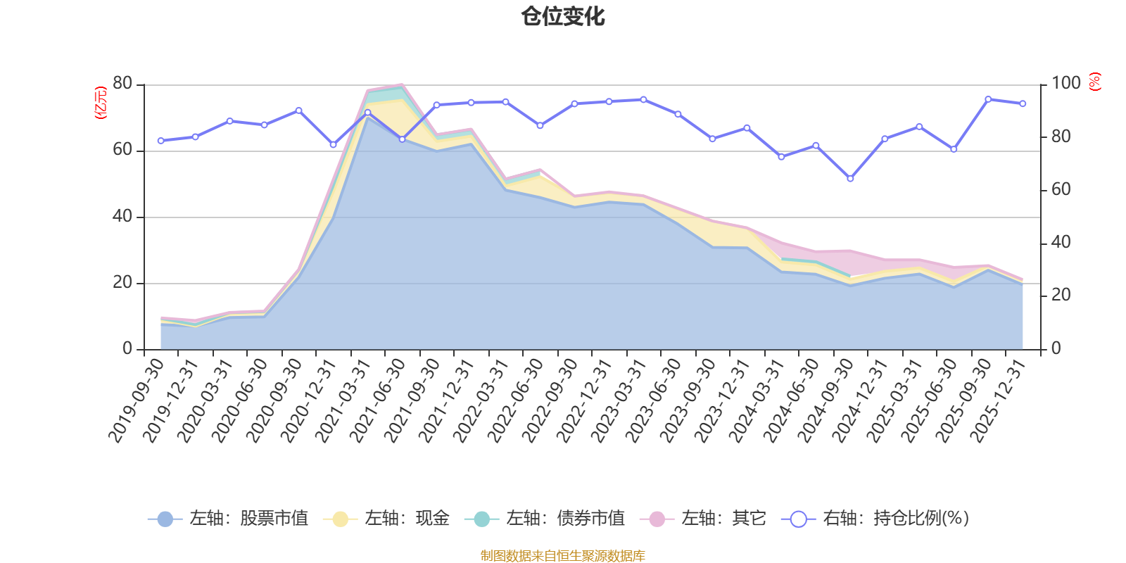 据定期报告数据统计,近三年平均股票仓位为82.21%,同类平均为87.64%。2025年三季度末基金达到94.41%的最高仓位,2024年三季度末最低,为64.49%。