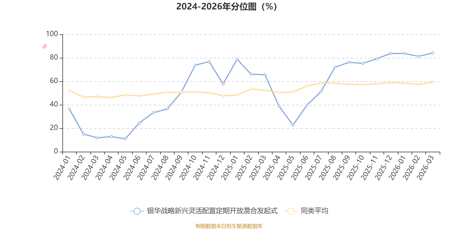 通过所选区间该基金净值增长率分位图,可以观察该基金与同类基金业绩比较情况。图为坐标原点到区间内某时点的净值增长率在同类基金中的分位数。