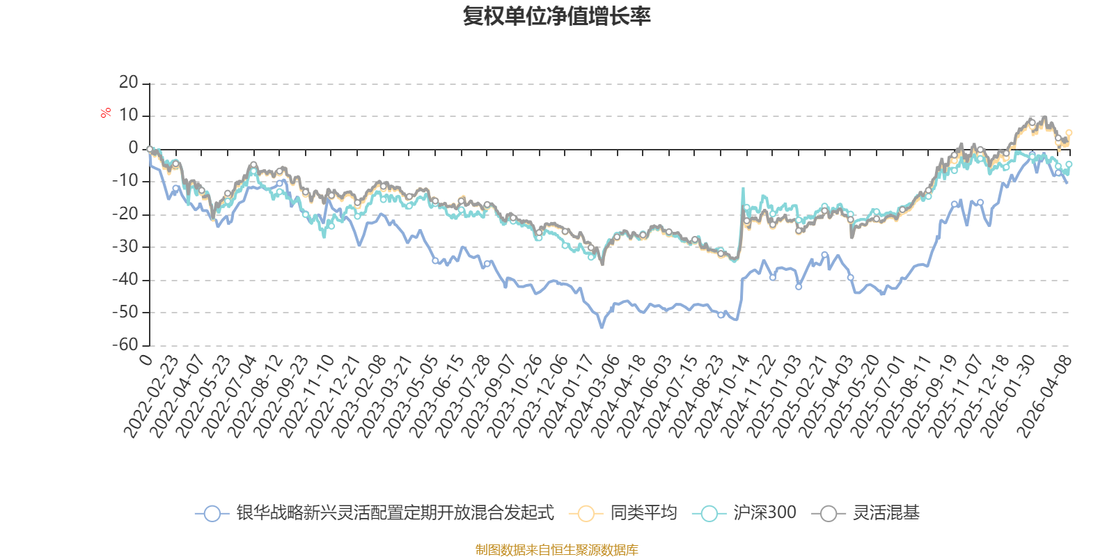 截至4月3日,银华战略新兴灵活配置定期开放混合发起式近三个月复权单位净值增长率为-0.71%,位于同类可比基金757/1287;近半年复权单位净值增长率为5.47%,位于同类可比基金475/1286;近一年复权单位净值增长率为46.98%,位于同类可比基金438/1286;近三年复权单位净值增长率为22.46%,位于同类可比基金457/1286。