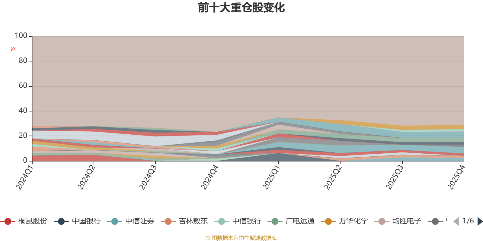 截至2025年末,基金十大重仓股分别是中国平安、招商银行、美的集团、兴业银行、中信证券、国泰海通、龙佰集团、格力电器、吉林敖东、伊利股份。