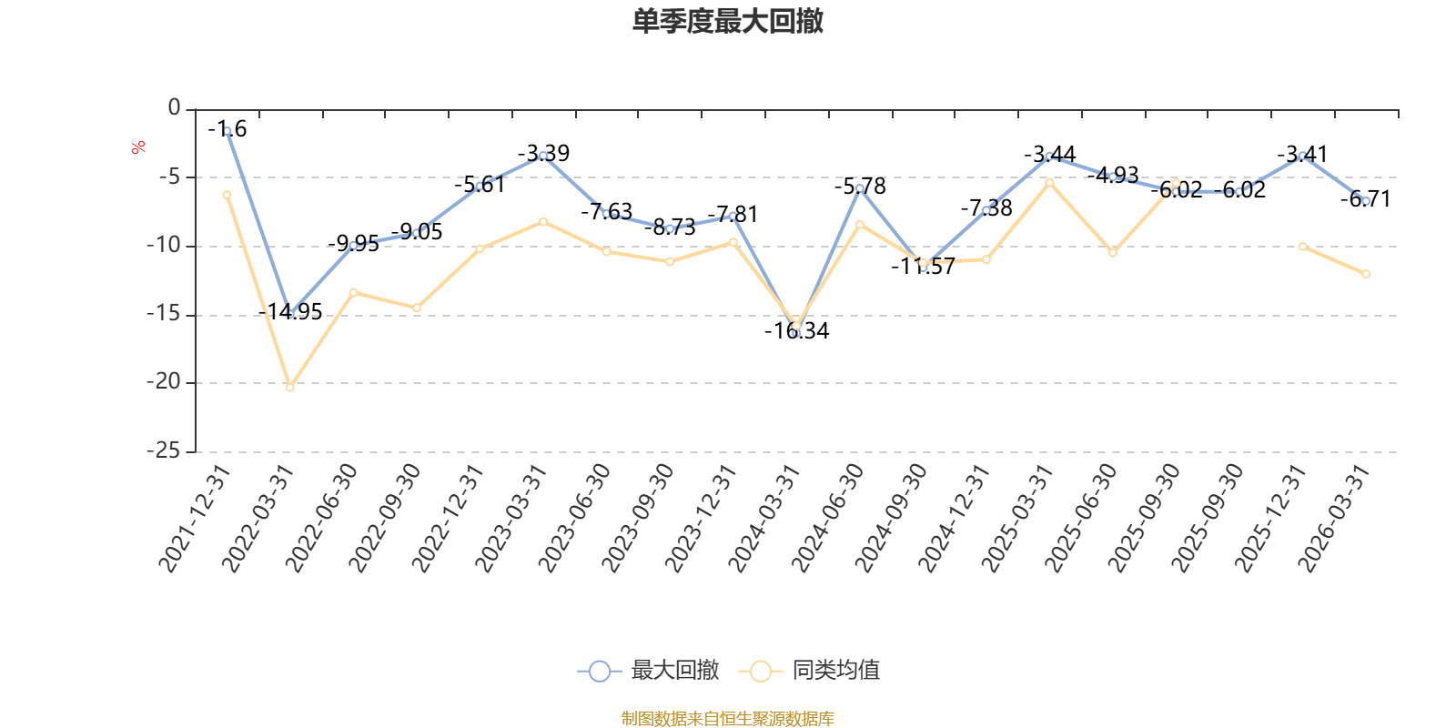截至4月7日,基金近三年最大回撤为27.78%,同类可比基金排名75/259。单季度最大回撤出现在2024年一季度,为16.34%。