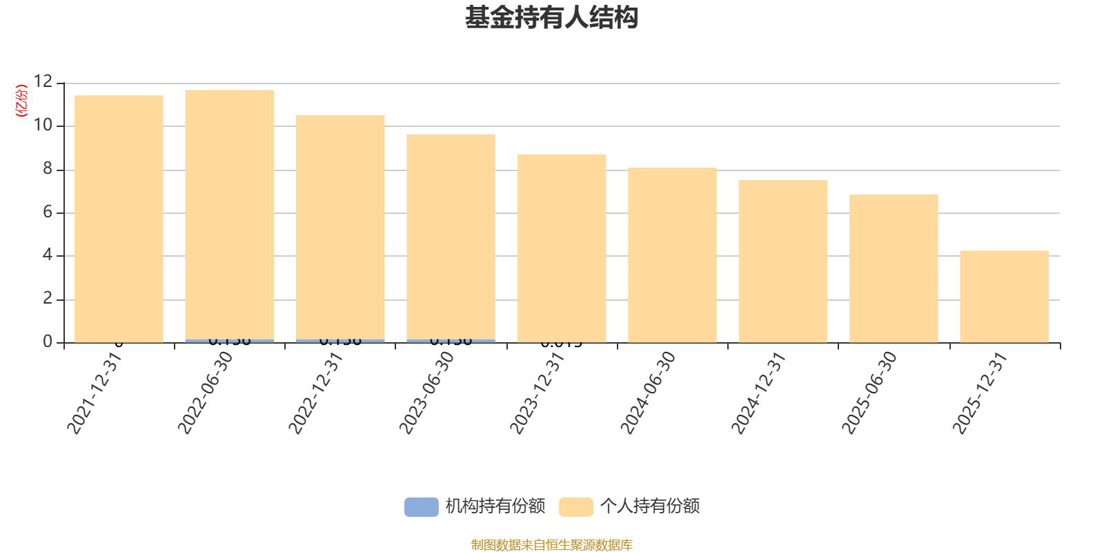 截至2025年12月31日,基金持有人共计10.74万户,合计持有4.25亿份。其中管理人员工持有46.11万份,占比0.11%,个人投资者占比100.00%。