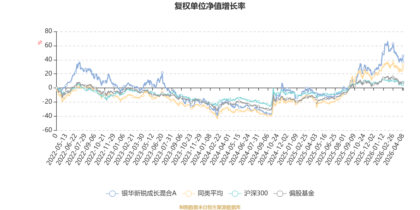 截至4月8日,银华新锐成长混合A近三个月复权单位净值增长率为-3.69%,位于同类可比基金169/229;近半年复权单位净值增长率为10.85%,位于同类可比基金80/229;近一年复权单位净值增长率为70.39%,位于同类可比基金113/229;近三年复权单位净值增长率为34.88%,位于同类可比基金99/171。
