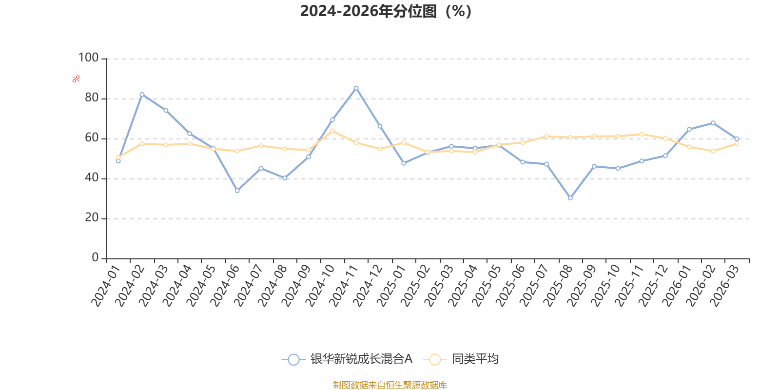 通过所选区间该基金净值增长率分位图,可以观察该基金与同类基金业绩比较情况。图为坐标原点到区间内某时点的净值增长率在同类基金中的分位数。