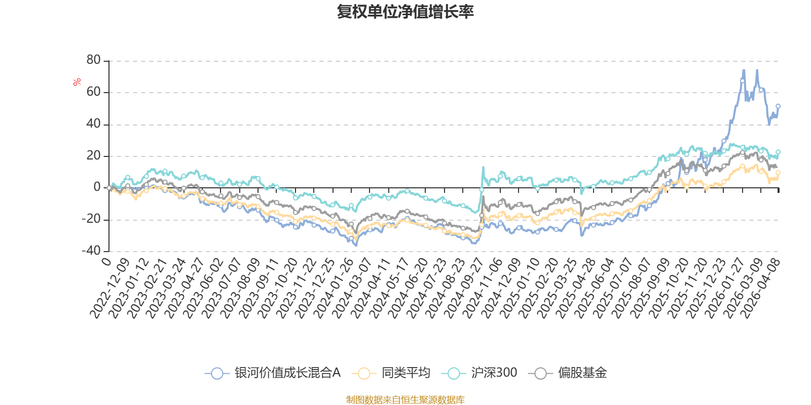 截至4月8日,银河价值成长混合A近三个月复权单位净值增长率为8.00%,位于同类可比基金76/689;近半年复权单位净值增长率为36.27%,位于同类可比基金17/689;近一年复权单位净值增长率为116.52%,位于同类可比基金23/685;近三年复权单位净值增长率为57.18%,位于同类可比基金37/417。