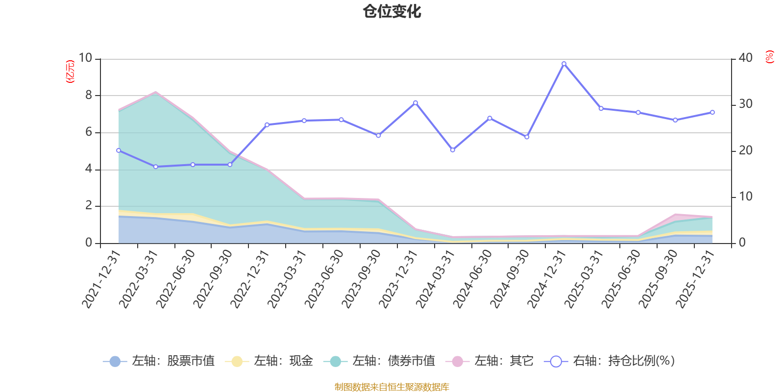 据定期报告数据统计,近三年平均股票仓位为27.44%,同类平均为19.2%。2024年末基金达到38.93%的最高仓位,2022年一季度末最低,为16.6%。