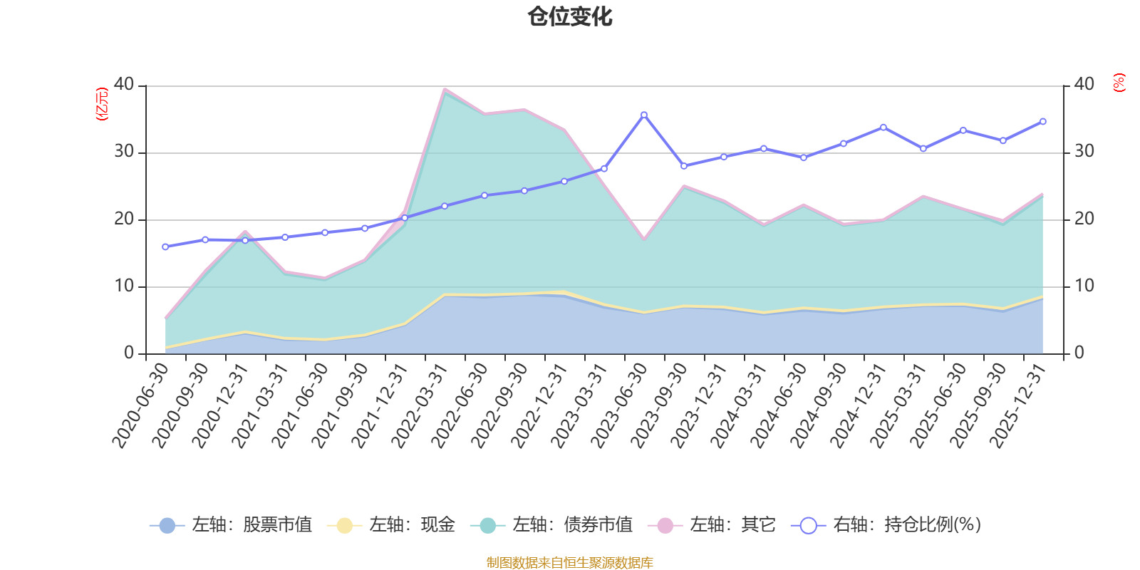 据定期报告数据统计,近三年平均股票仓位为31.32%,同类平均为19.2%。2023年上半年末基金达到35.63%的最高仓位,2020年上半年末最低,为15.95%。
