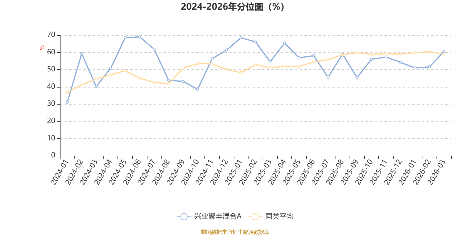 通过所选区间该基金净值增长率分位图,可以观察该基金与同类基金业绩比较情况。图为坐标原点到区间内某时点的净值增长率在同类基金中的分位数。
