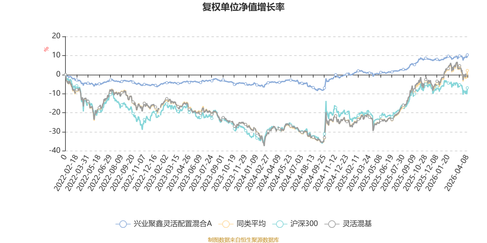 截至4月8日,兴业聚鑫灵活配置混合A近三个月复权单位净值增长率为1.74%,位于同类可比基金434/1287;近半年复权单位净值增长率为1.80%,位于同类可比基金710/1286;近一年复权单位净值增长率为11.28%,位于同类可比基金1039/1286;近三年复权单位净值增长率为14.47%,位于同类可比基金623/1286。