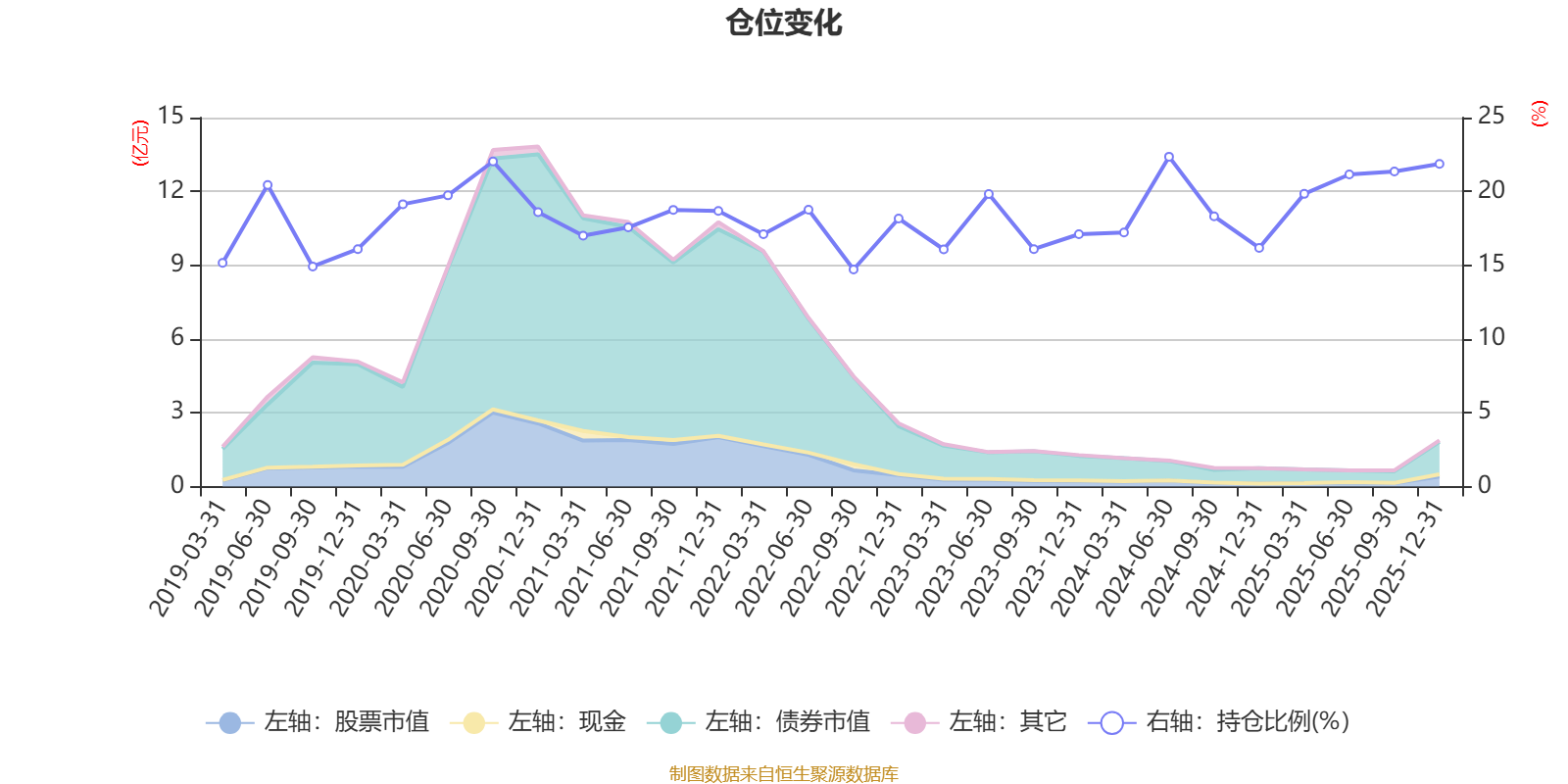 据定期报告数据统计,近三年平均股票仓位为18.94%,同类平均为72.57%。2024年上半年末基金达到22.35%的最高仓位,2022年三季度末最低,为14.71%。