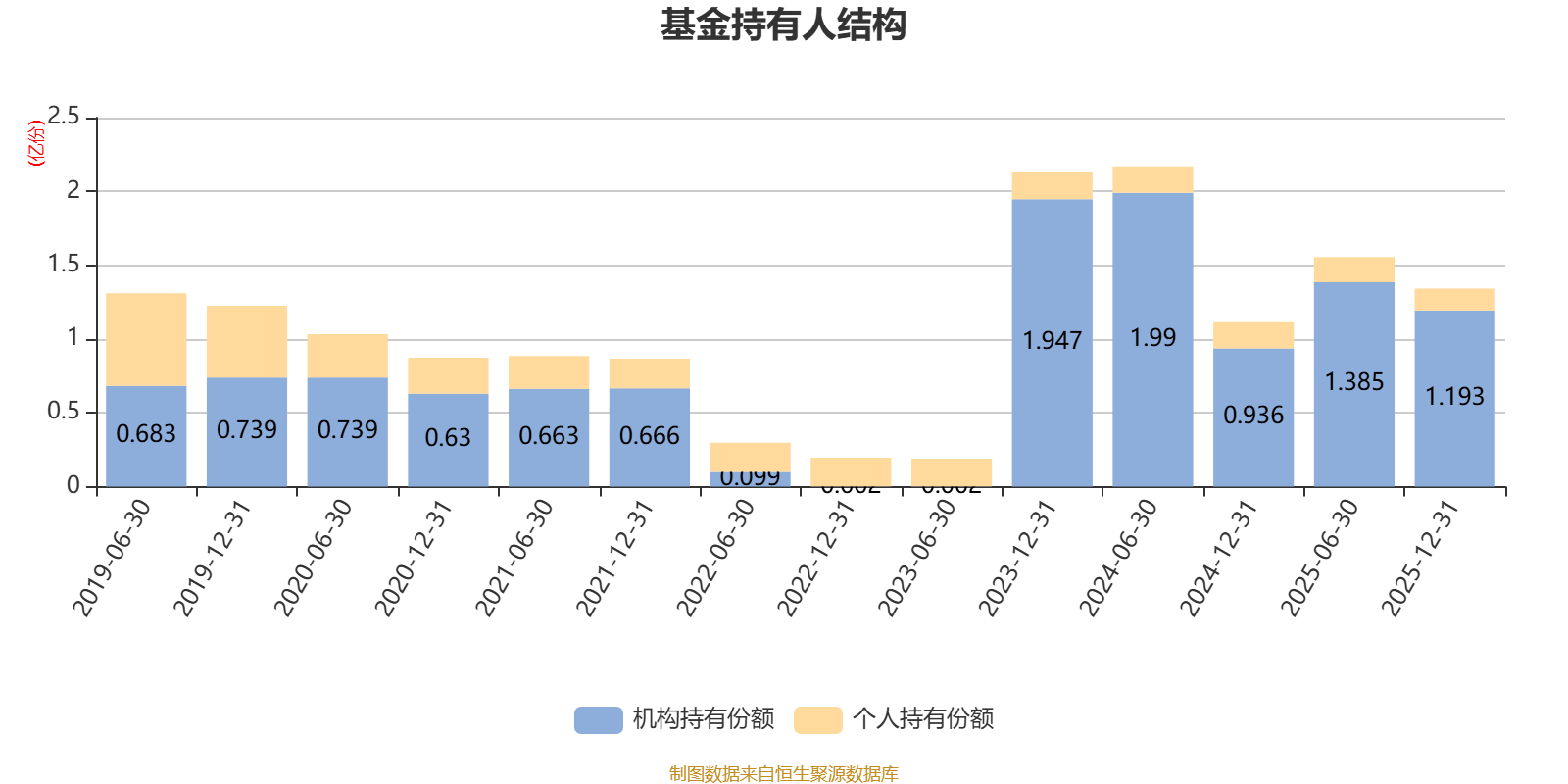 截至2025年12月31日,基金持有人共计2115户,合计持有1.34亿份。其中管理人员工持有3.61万份,占比0.03%,机构持有份额占比88.95%,个人投资者占比11.05%。