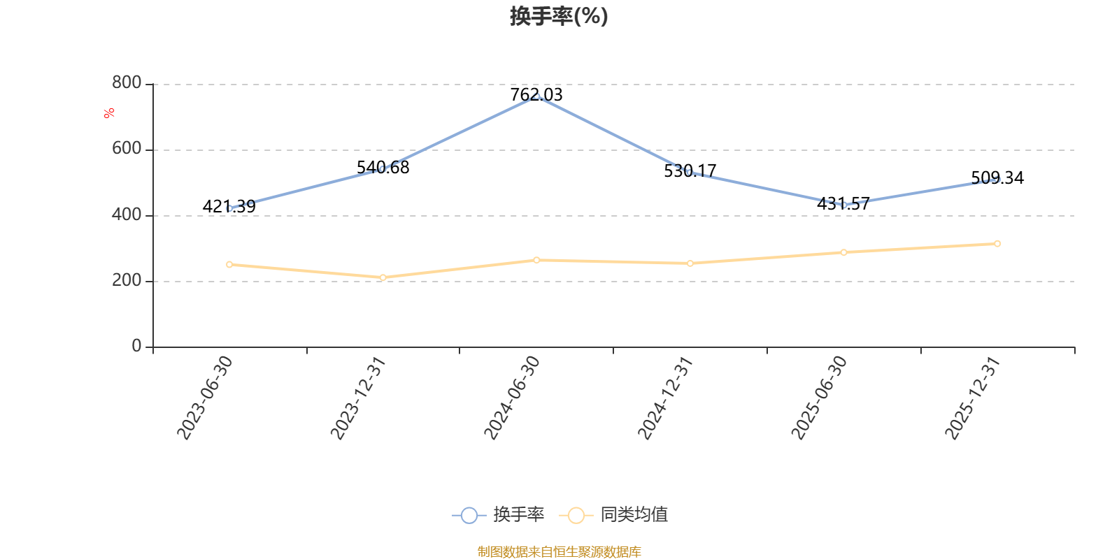 截至2025年12月31日,基金最近一年换手率约949.97%,持续高于同类均值。