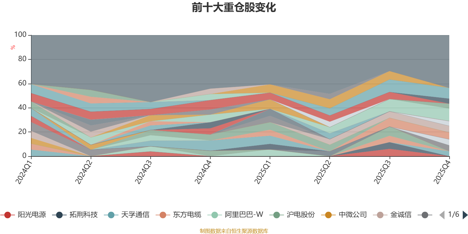 截至2025年末,基金十大重仓股分别是新易盛、中际旭创、东山精密、工业富联、云铝股份、洛阳钼业、科士达、天孚通信、山金国际、中矿资源。